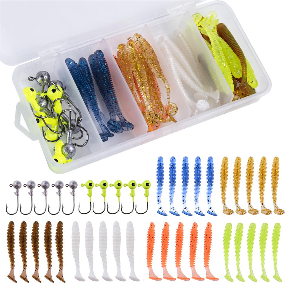 This 40-piece soft lure kit includes a variety of 5cm 0.7g soft lures and 3.2cm 3.5g jig head hooks for fishing. The kit also comes with fishing hooks and a tackle box for convenient storage and transport of your fishing gear.